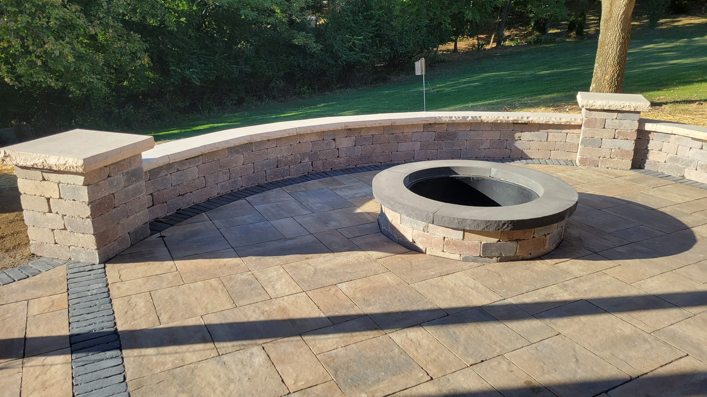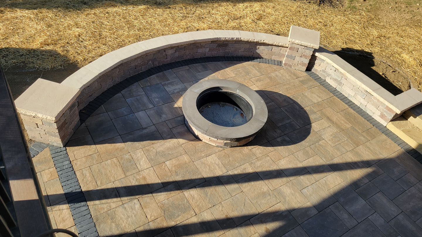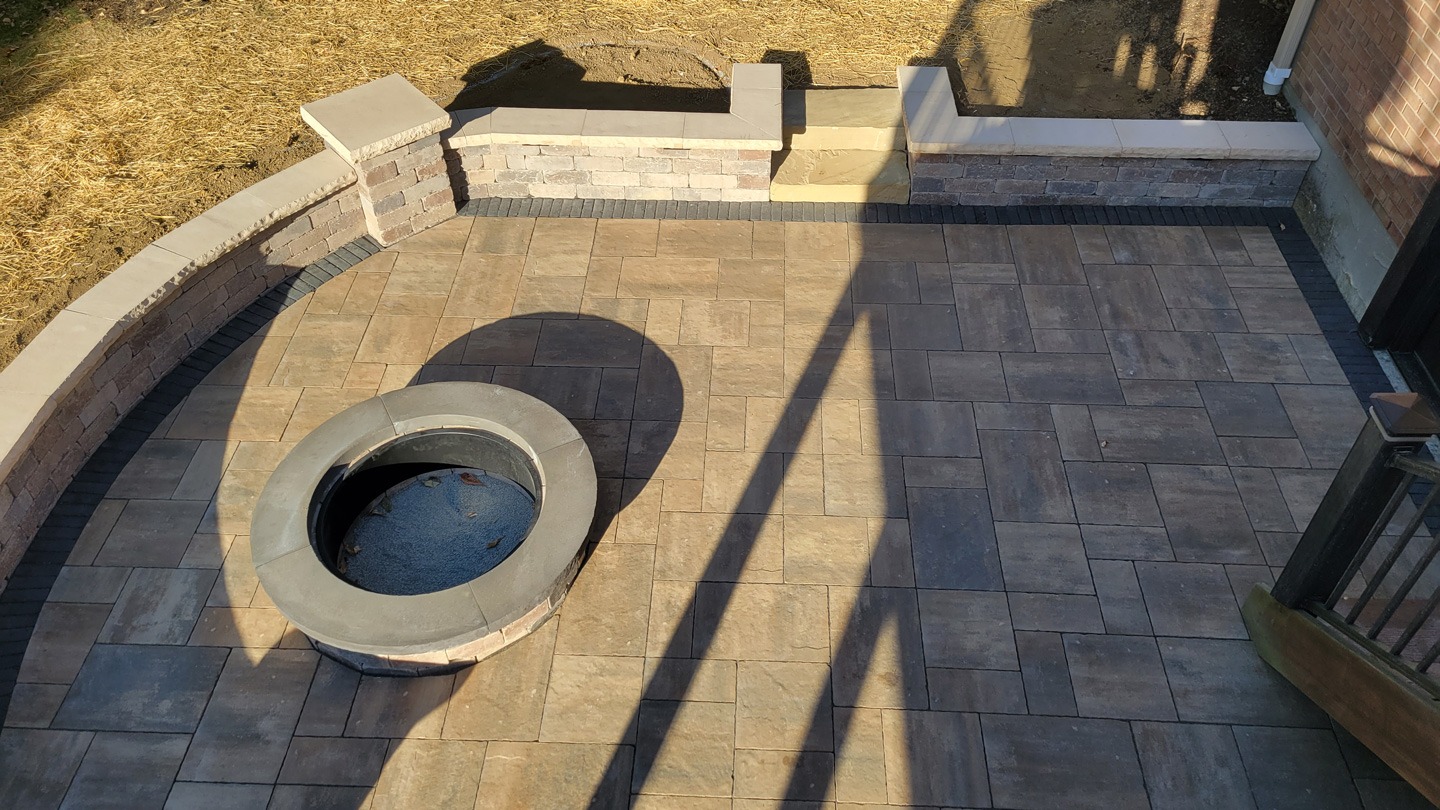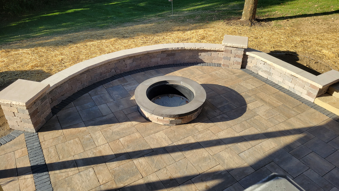 Click to Enlarge Images | Job Includes: Paver Patio Retaining Walls Fire Feature