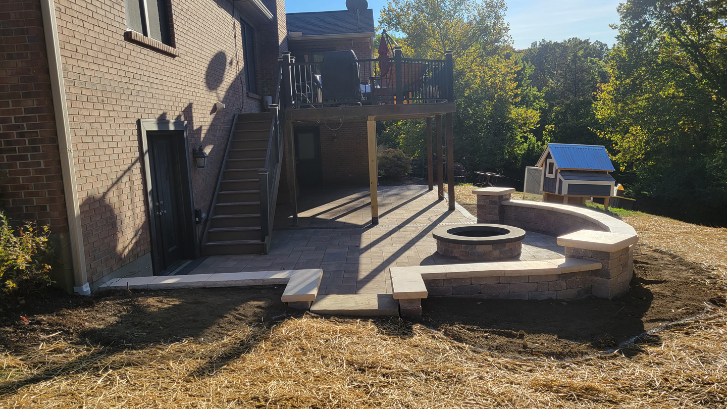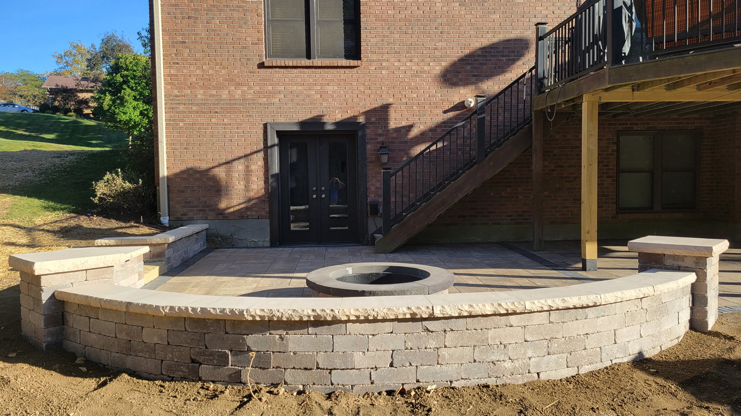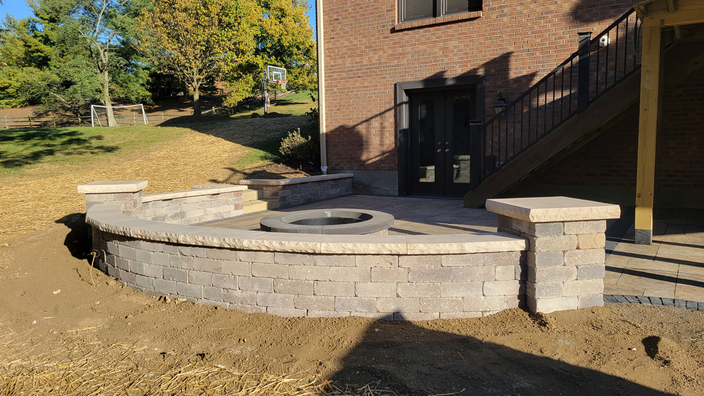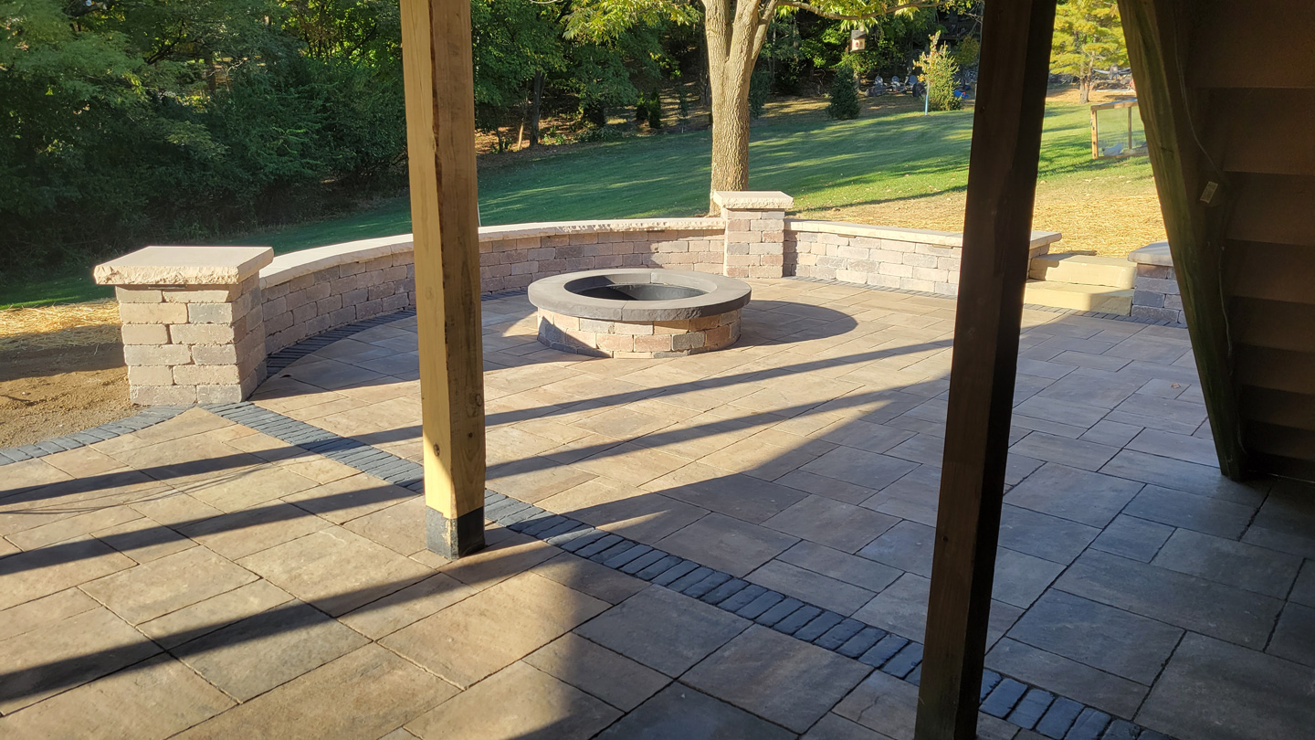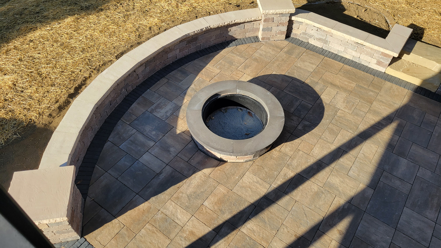 Click to Enlarge Images | Job Includes: Paver Patio Retaining Walls Fire Feature