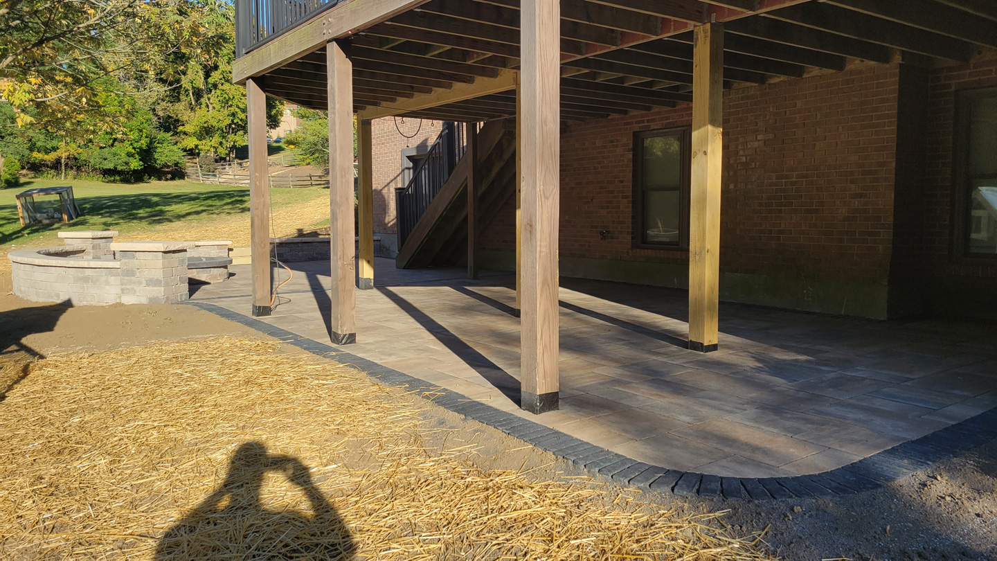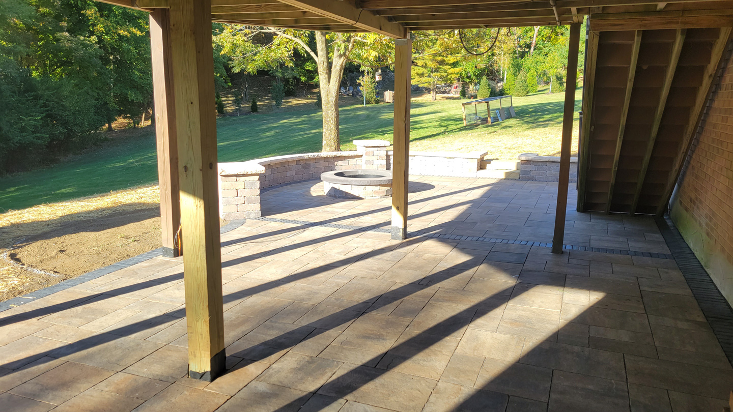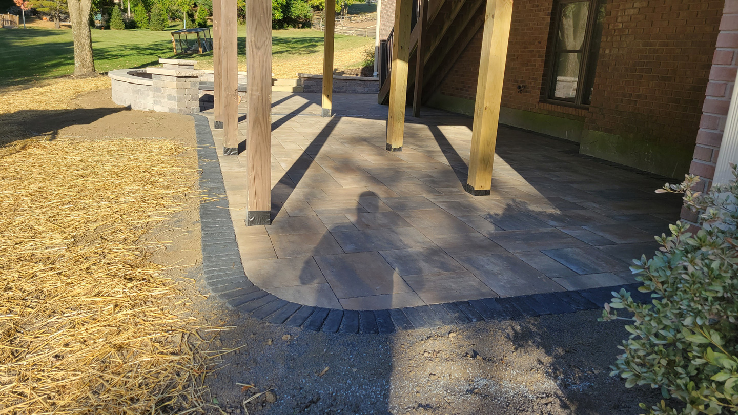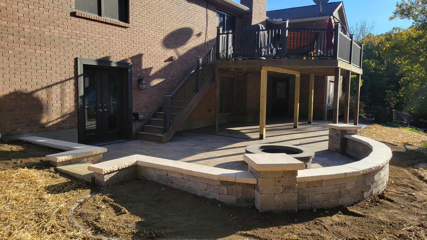 Click to Enlarge Images | Job Includes: Paver Patio Retaining Walls Fire Feature