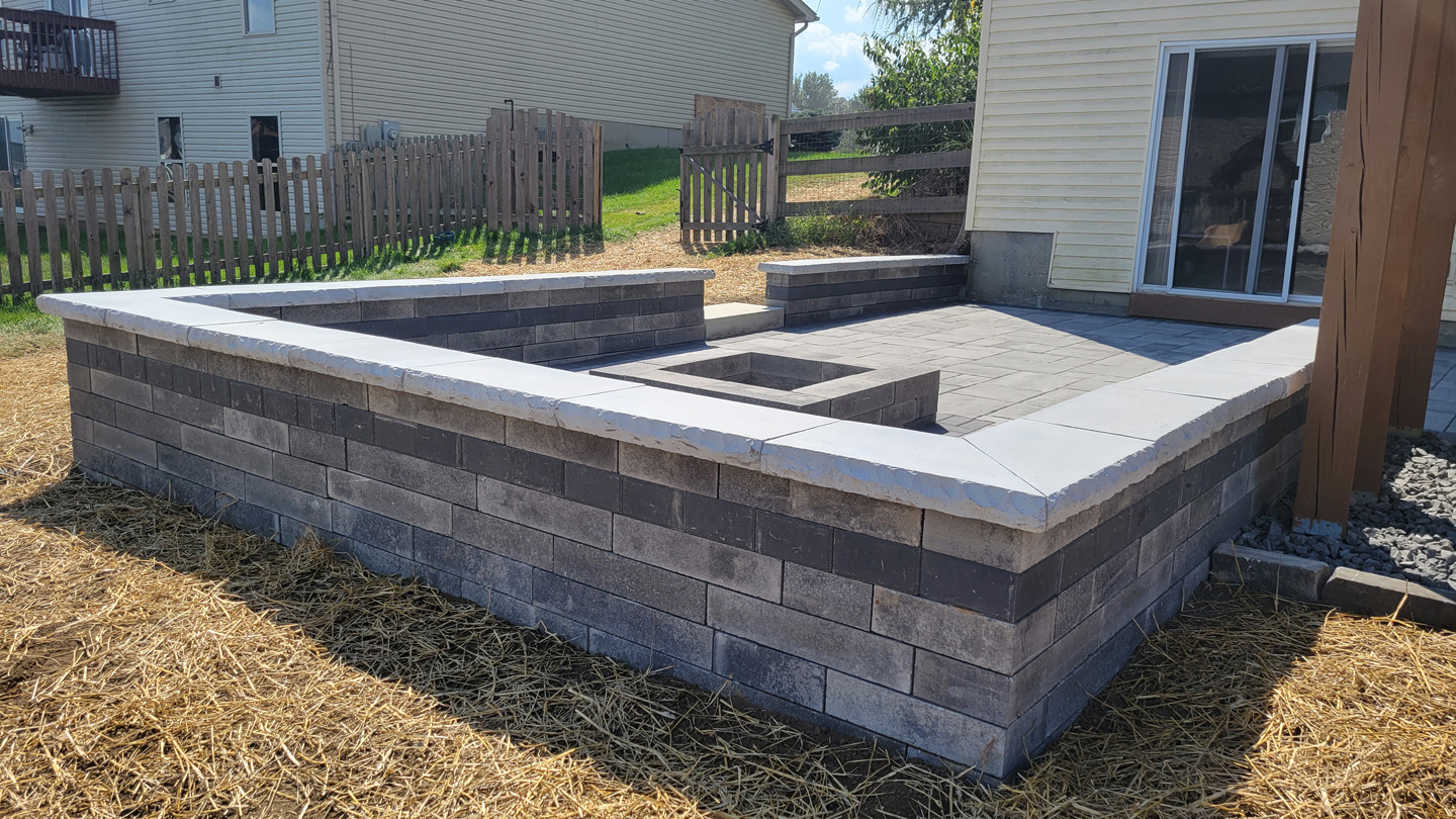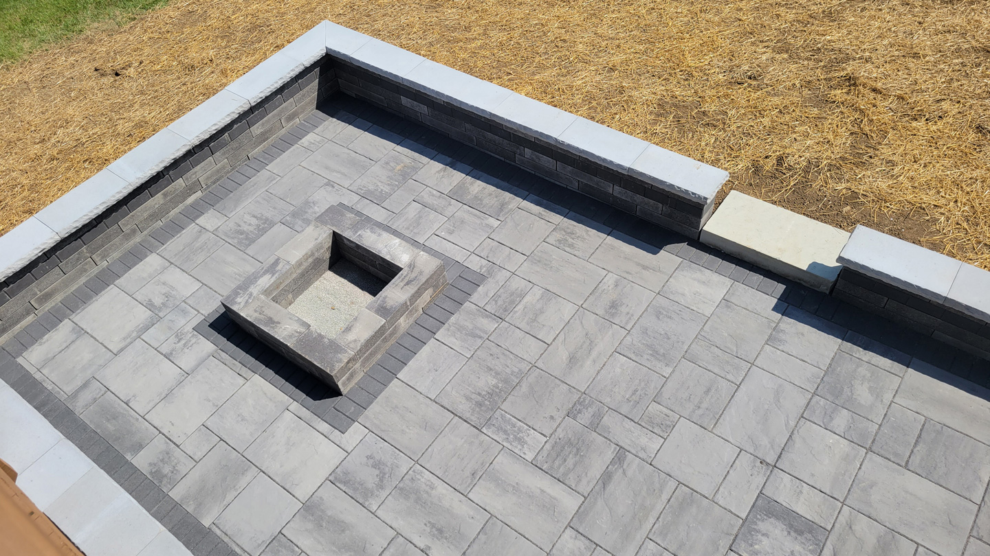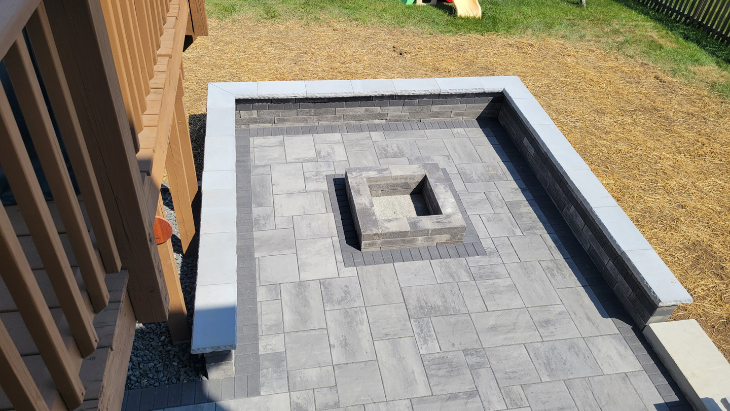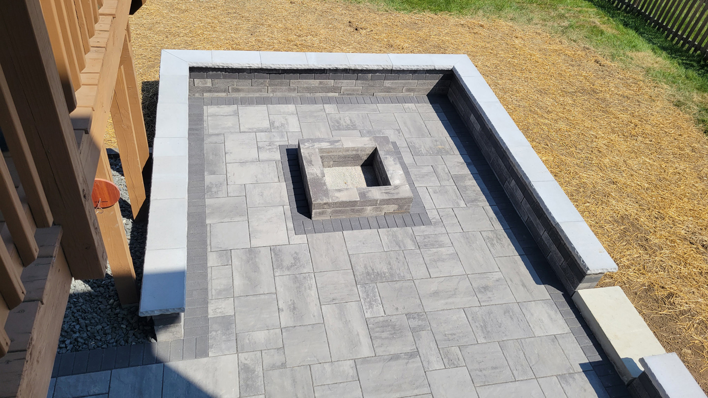 Click to Enlarge Images | Job Includes: Paver Patio Seating Wall Fire Feature