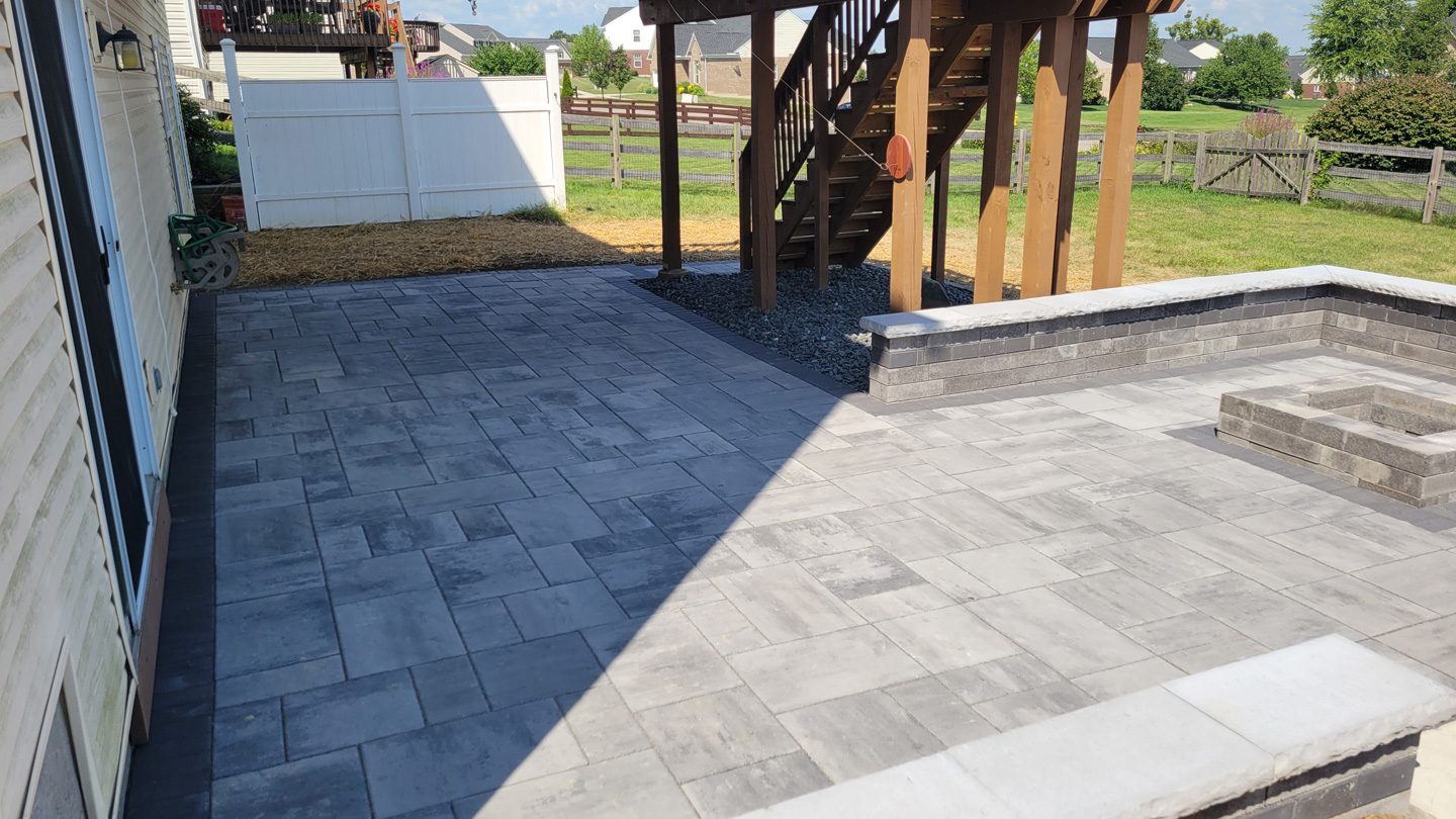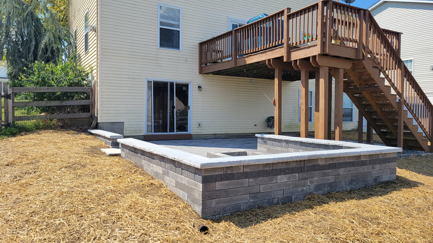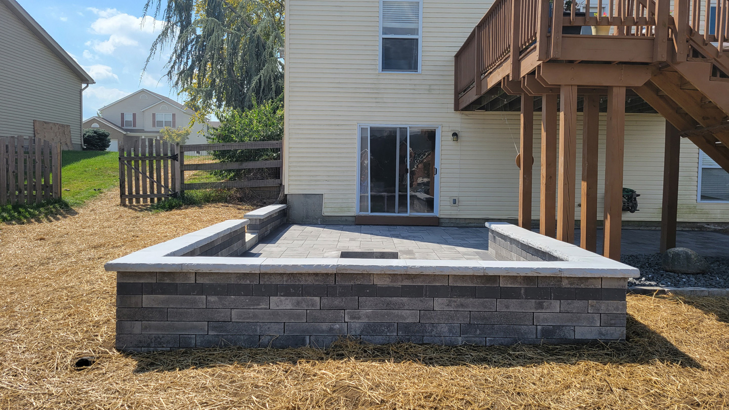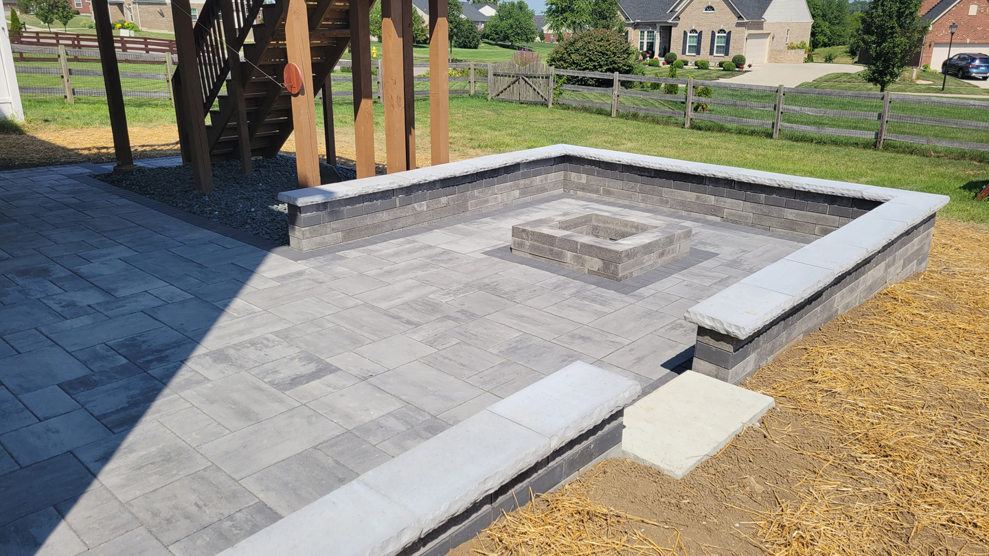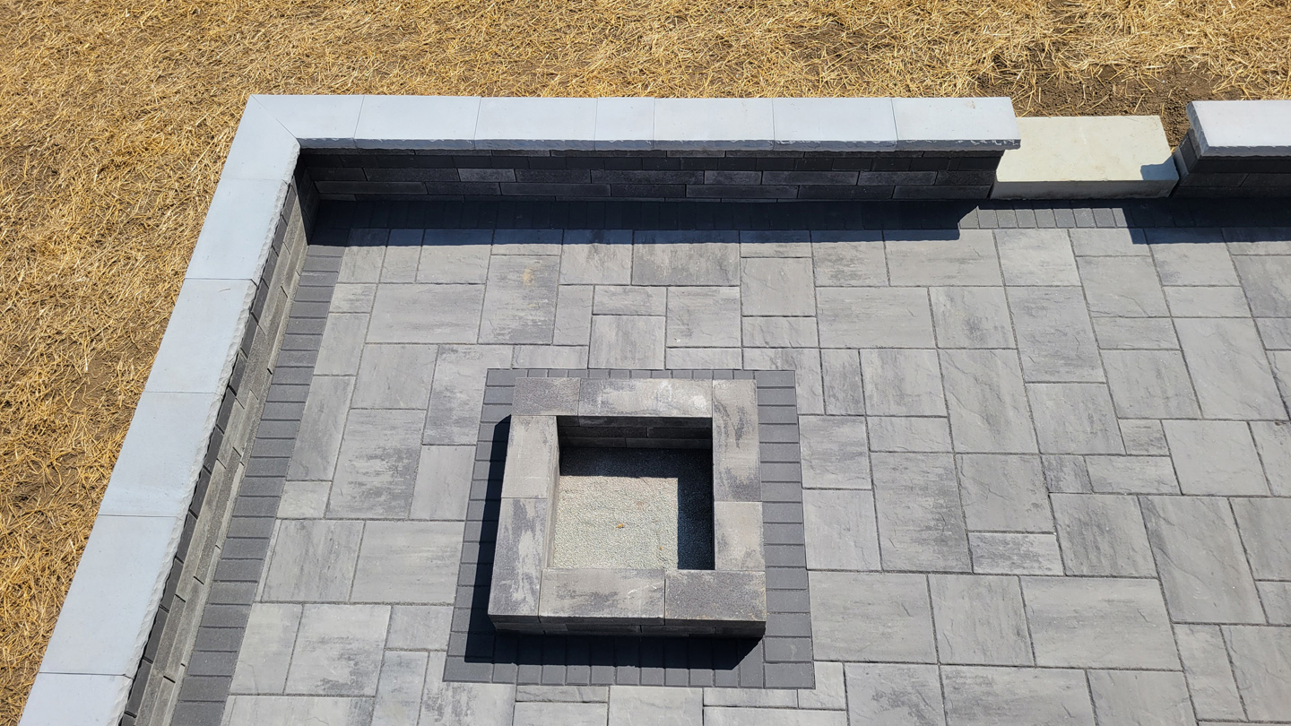 Click to Enlarge Images | Job Includes: Paver Patio Seating Wall Fire Feature
