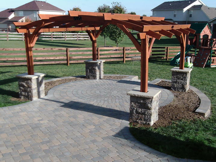 Click to Enlarge Images | Job Includes: Paver Patio Retaining Walls Pergola