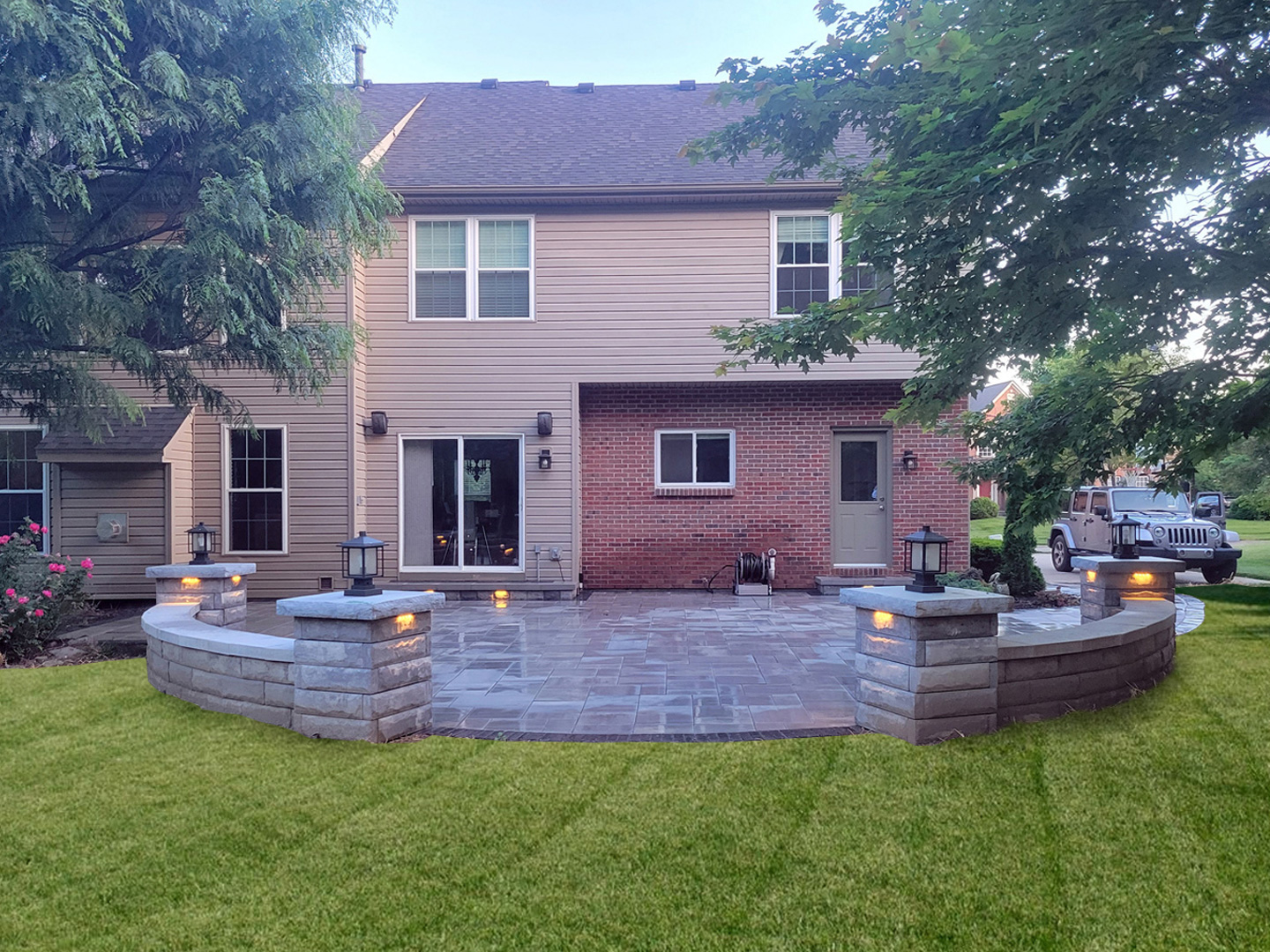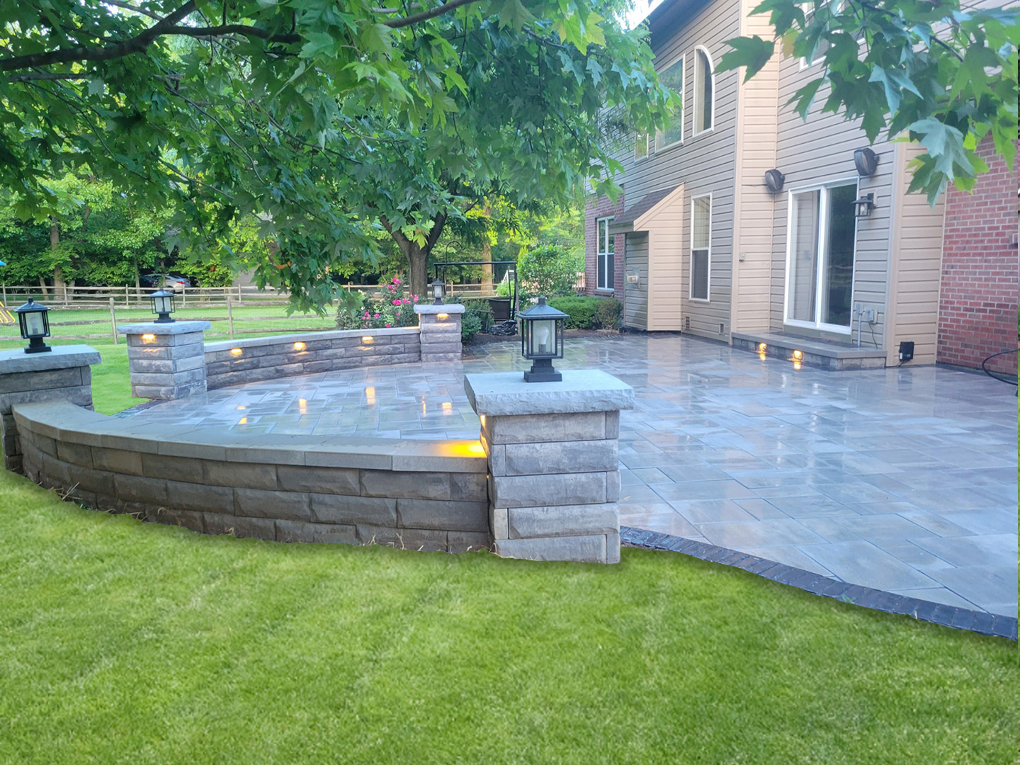 Click to Enlarge Images | Job Includes: Paver Patio Seating Wall Outdoor Lighting