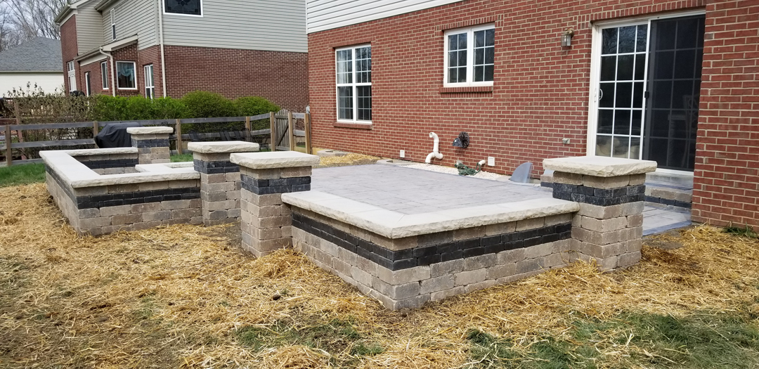 Click to Enlarge Images | Job Includes: Paver Patio Retaining Walls Fire Feature