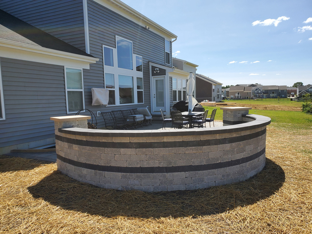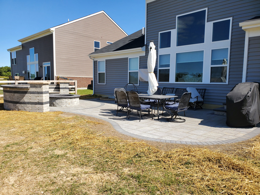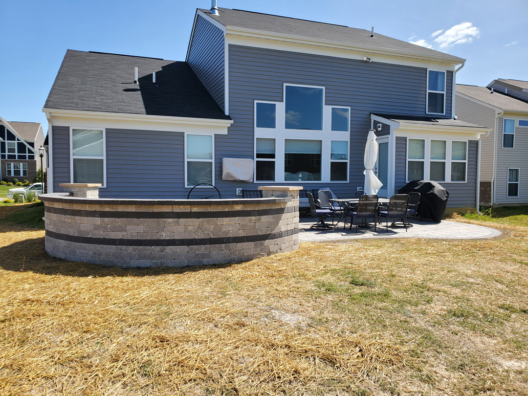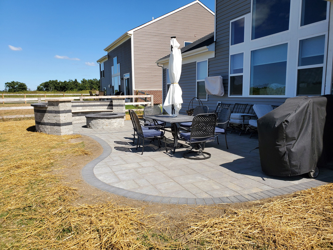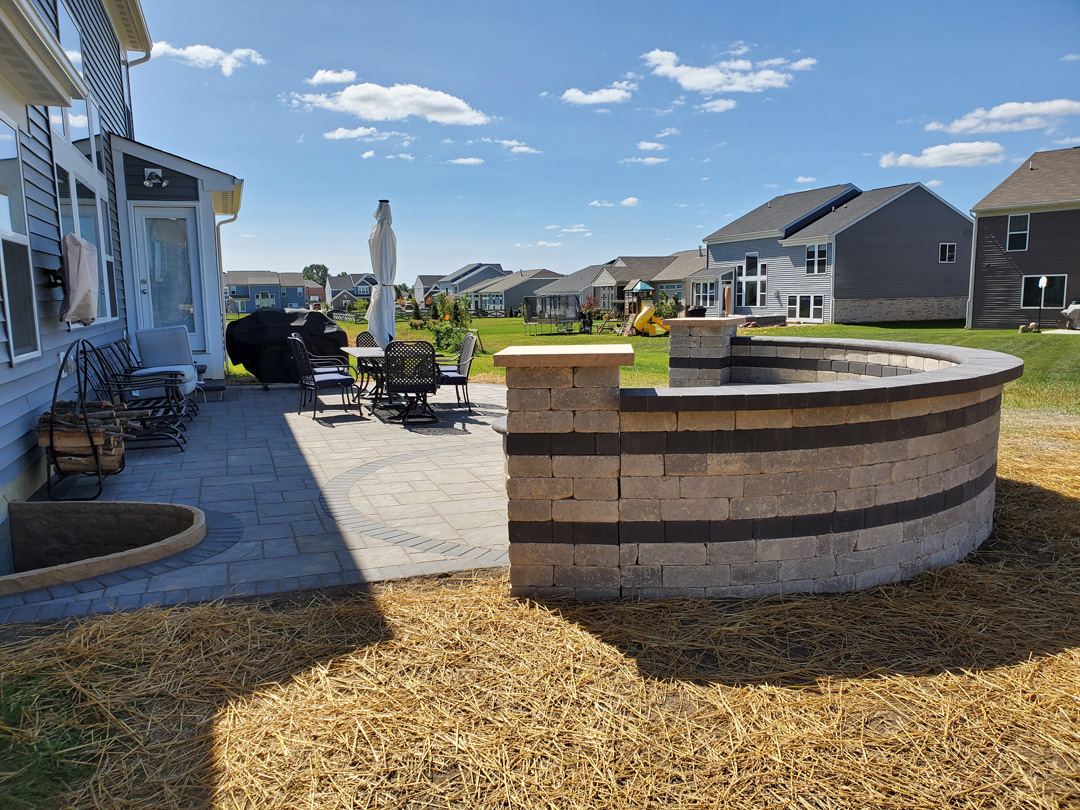 Click to Enlarge Images | Job Includes: Paver Patio Retaining Walls Fire Feature