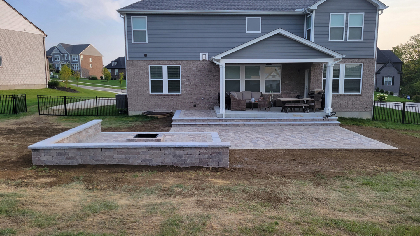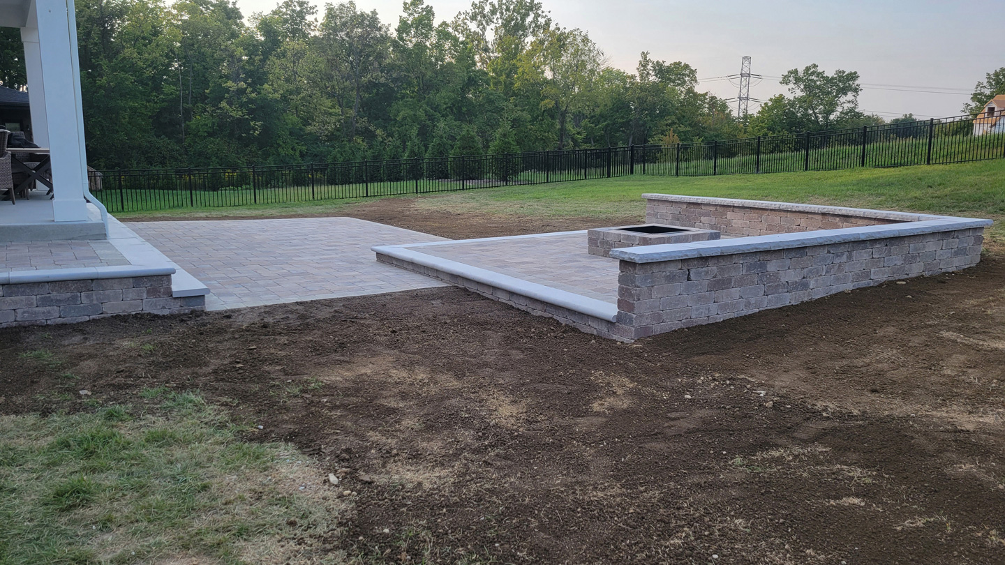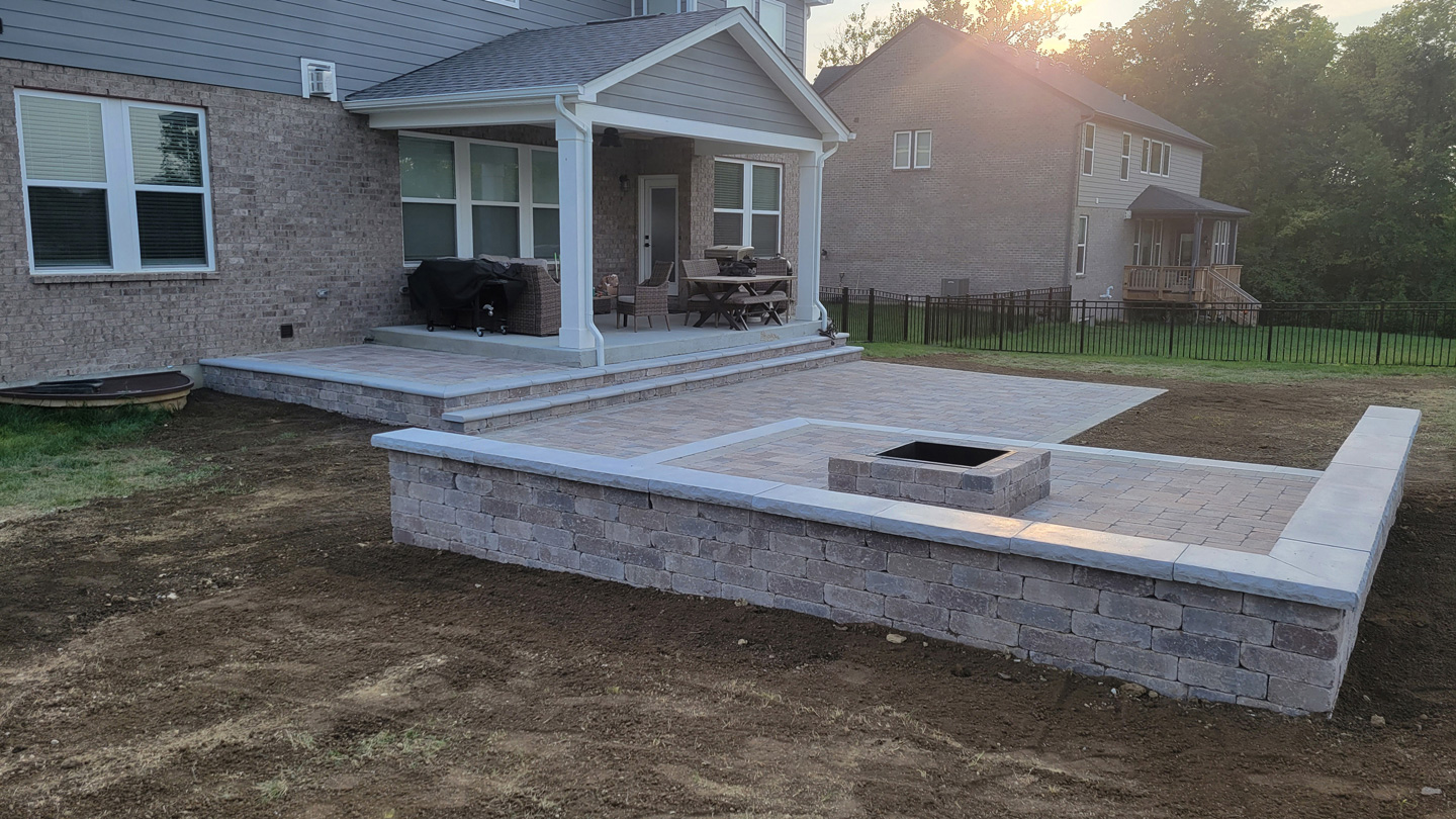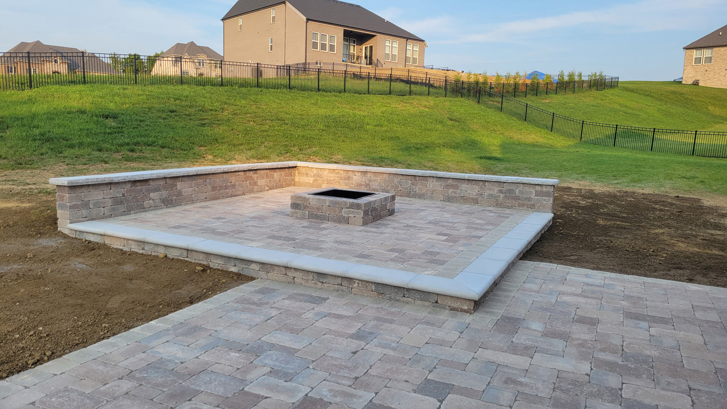 Click to Enlarge Images | Job Includes: Paver Patio Retaining Walls Fire Feature