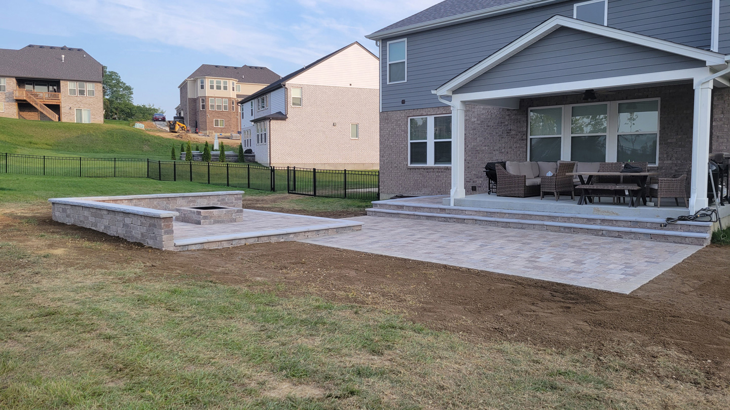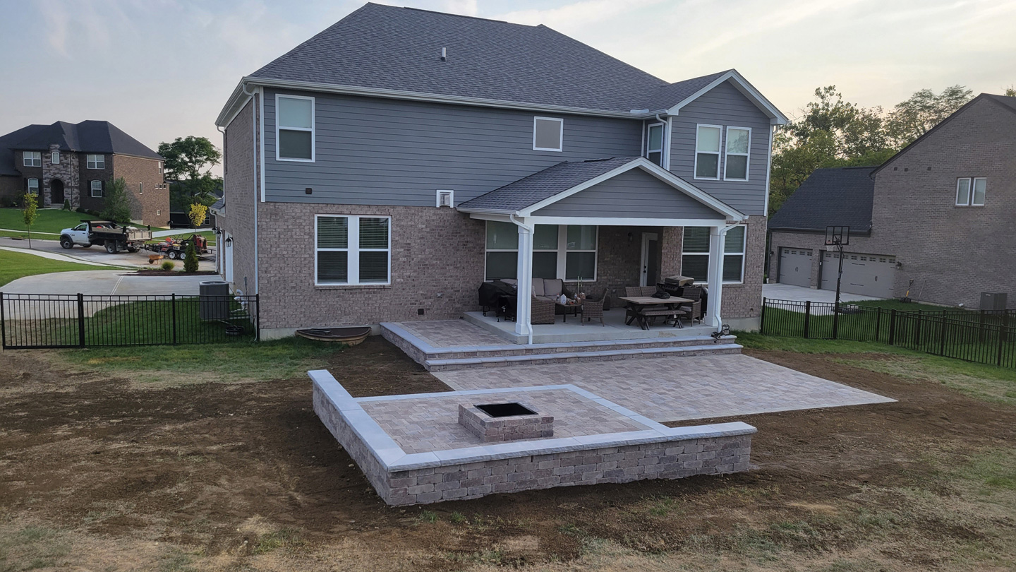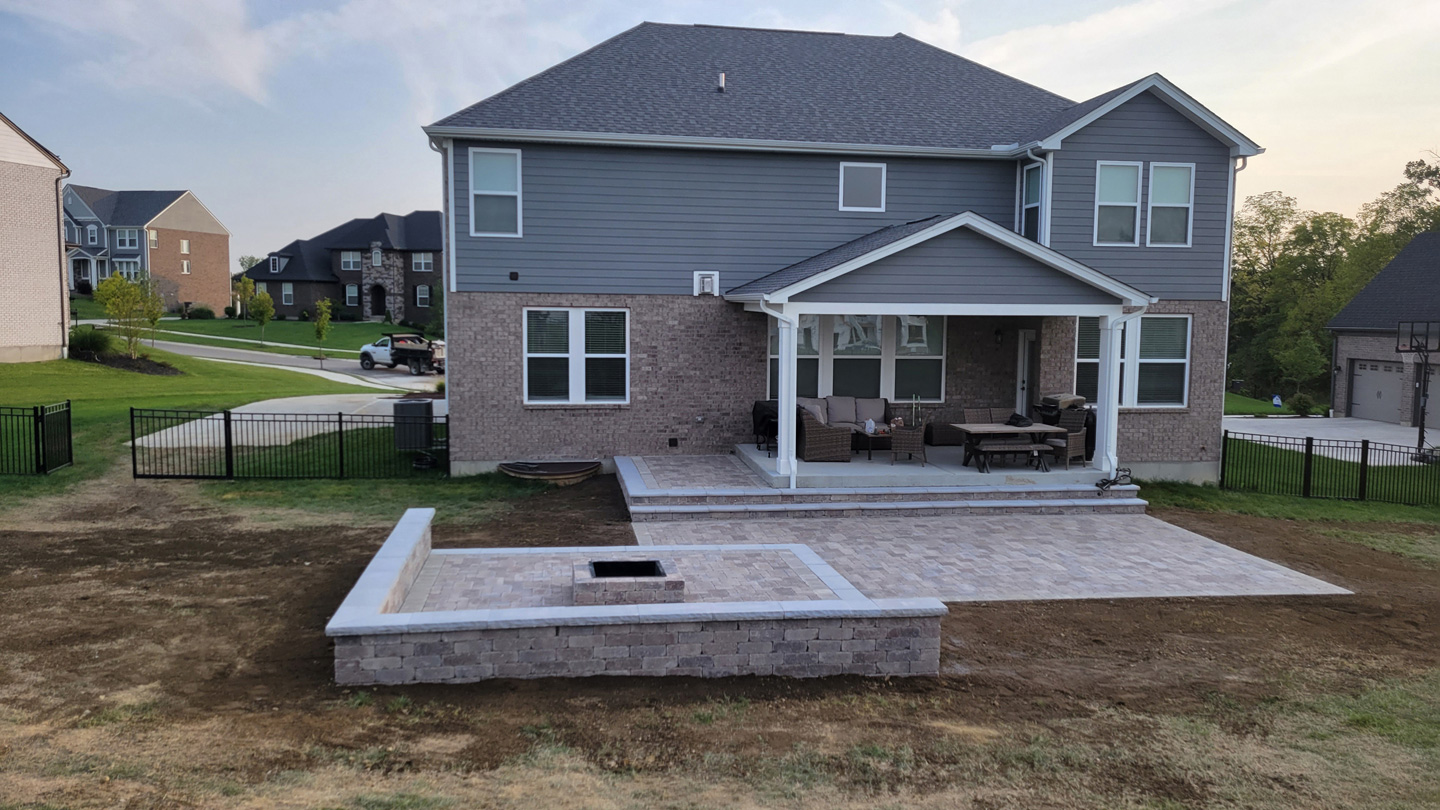 Click to Enlarge Images | Job Includes: Paver Patio Retaining Walls Fire Feature
