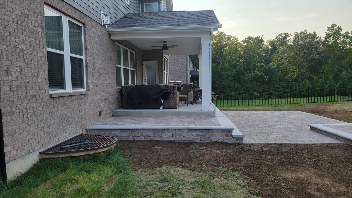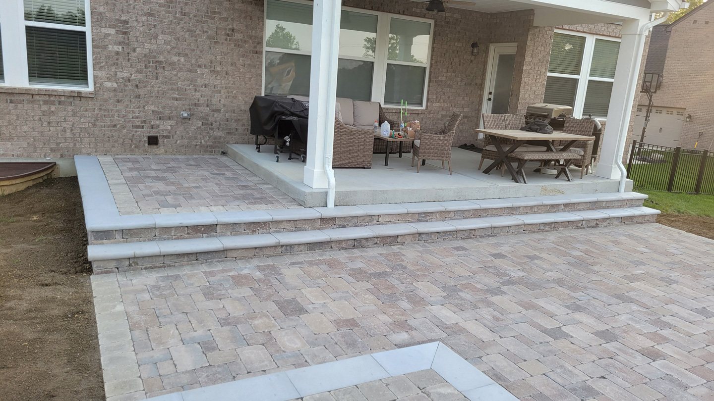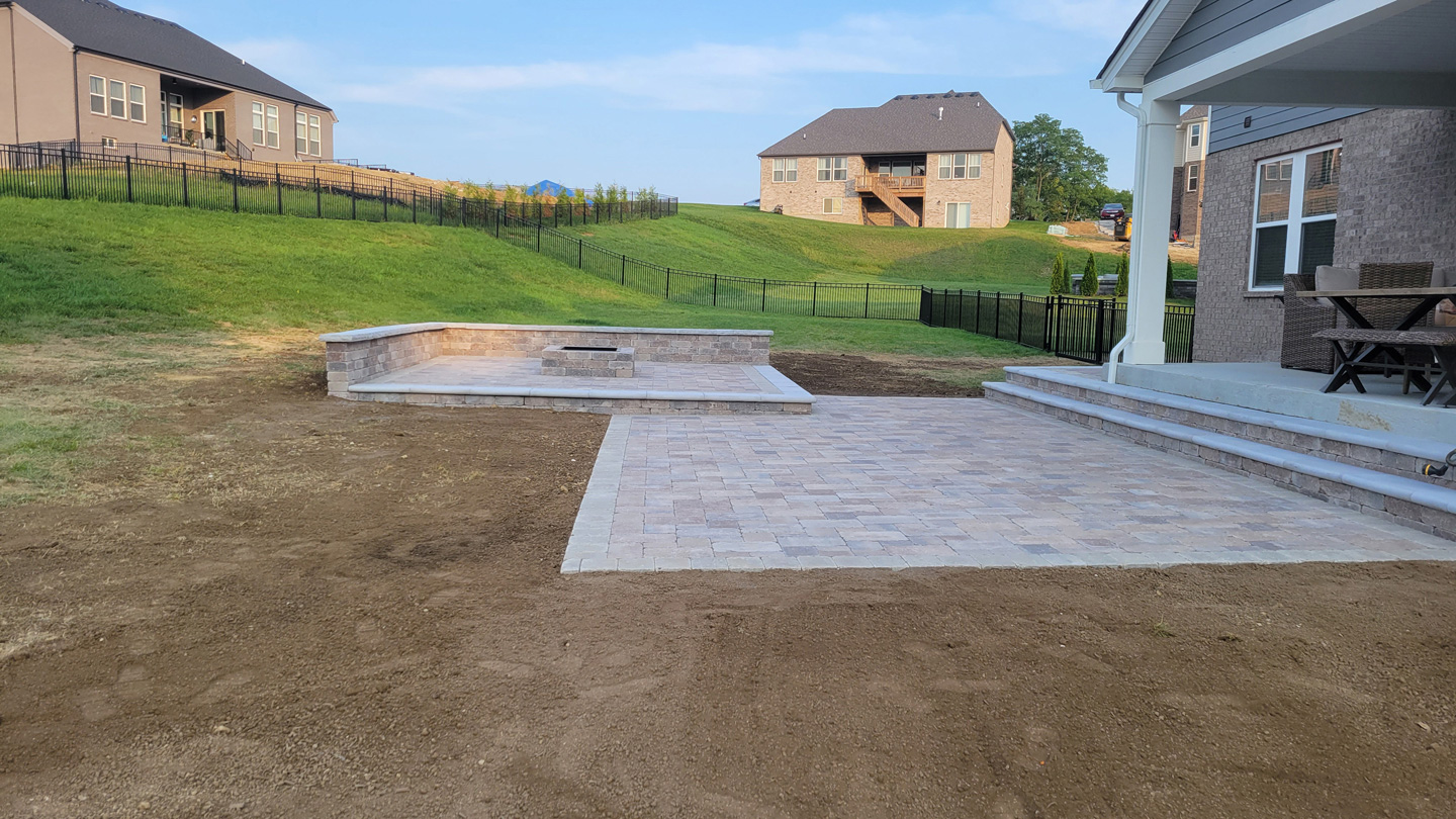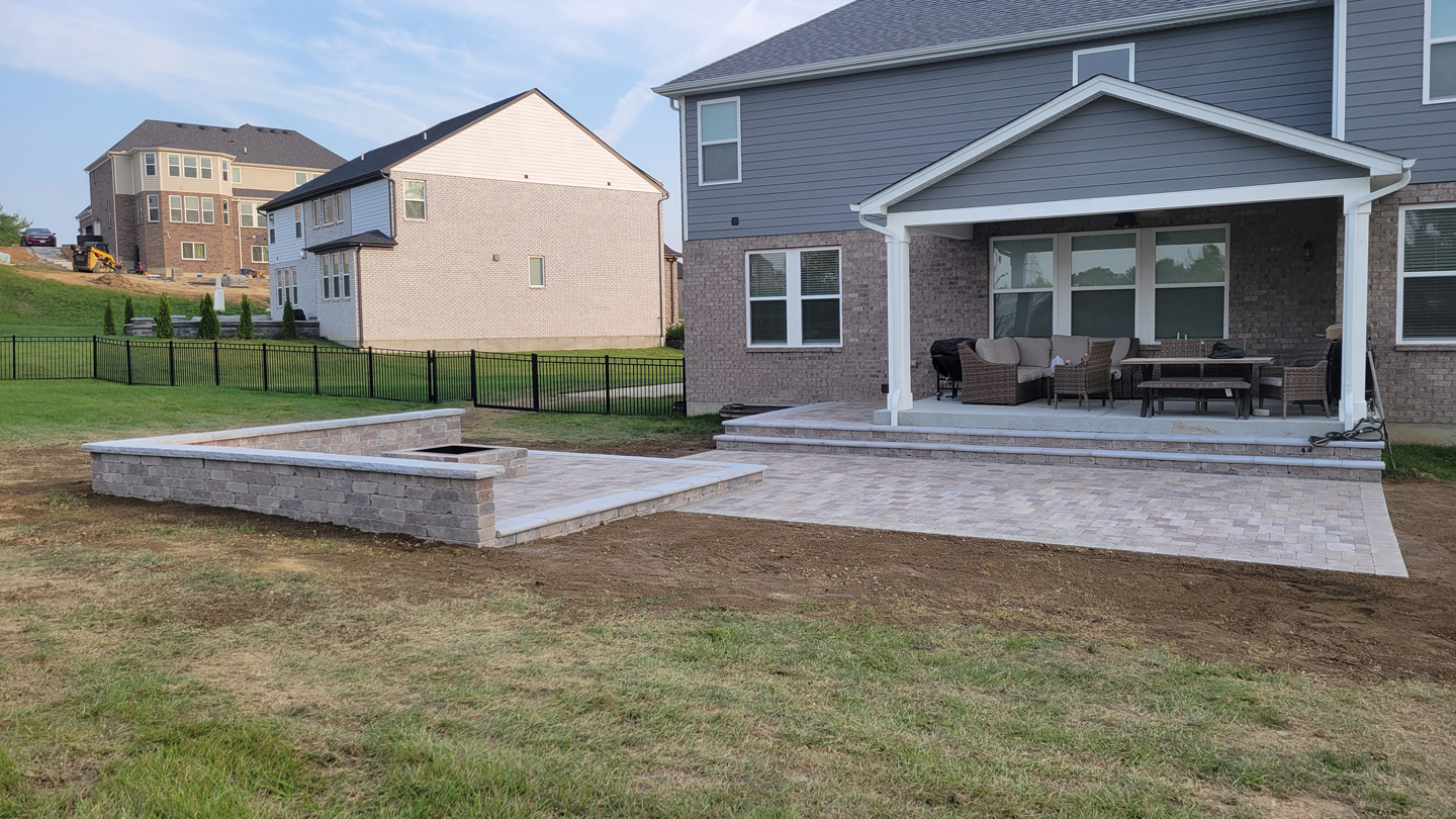 Click to Enlarge Images | Job Includes: Paver Patio Retaining Walls Fire Feature